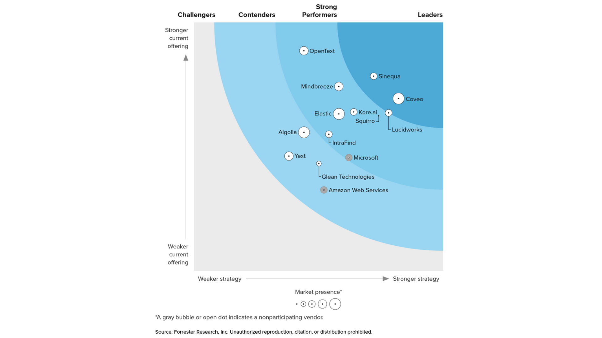 Sinequa was named a Leader in The Forrester Wave™: Cognitive Search Platforms, Q4 2023 report, which identifies, analyzes, and scores fourteen top vendors offering products with cognitive search capabilities across 27 different criteria.