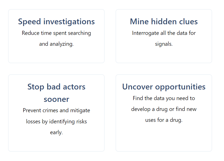 There is more data than ever to help identify threats, uncover misconduct, or solve cases. But there is far too much for humans to manually process, and traditional tools can’t keep up.