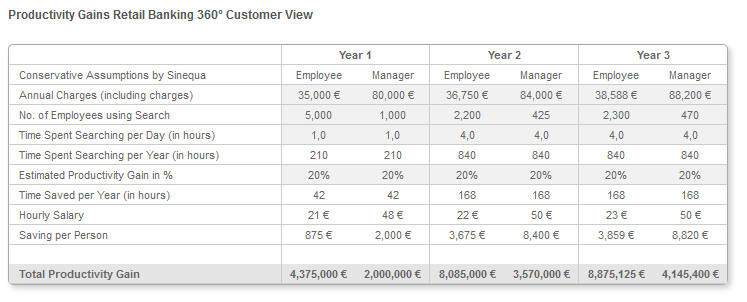 Consider the case of one of the largest European retail banks, as a point in case for the accumulation of many small gains (“sand grains”) to a very large ROI (“sand dune”). In fact, the time saved by several tens of thousands of employees across about 40 regional organisations adds up to staggering amounts.